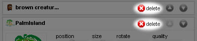 • Use the up/down arrows next to the Delete button to change layering order.